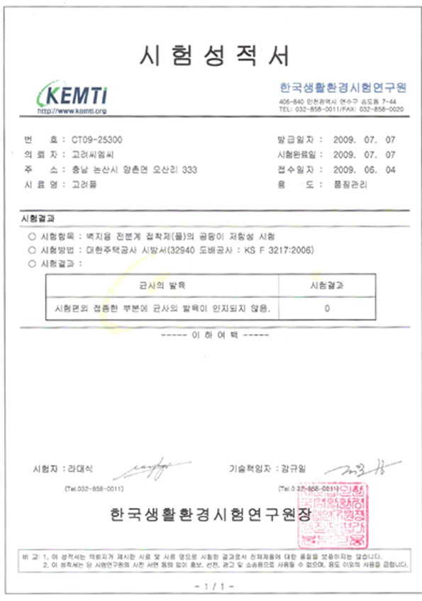 - 냄새가 없고 곰팡이 방지 기능이 우수 (TEST 방법 : KSF 3217)