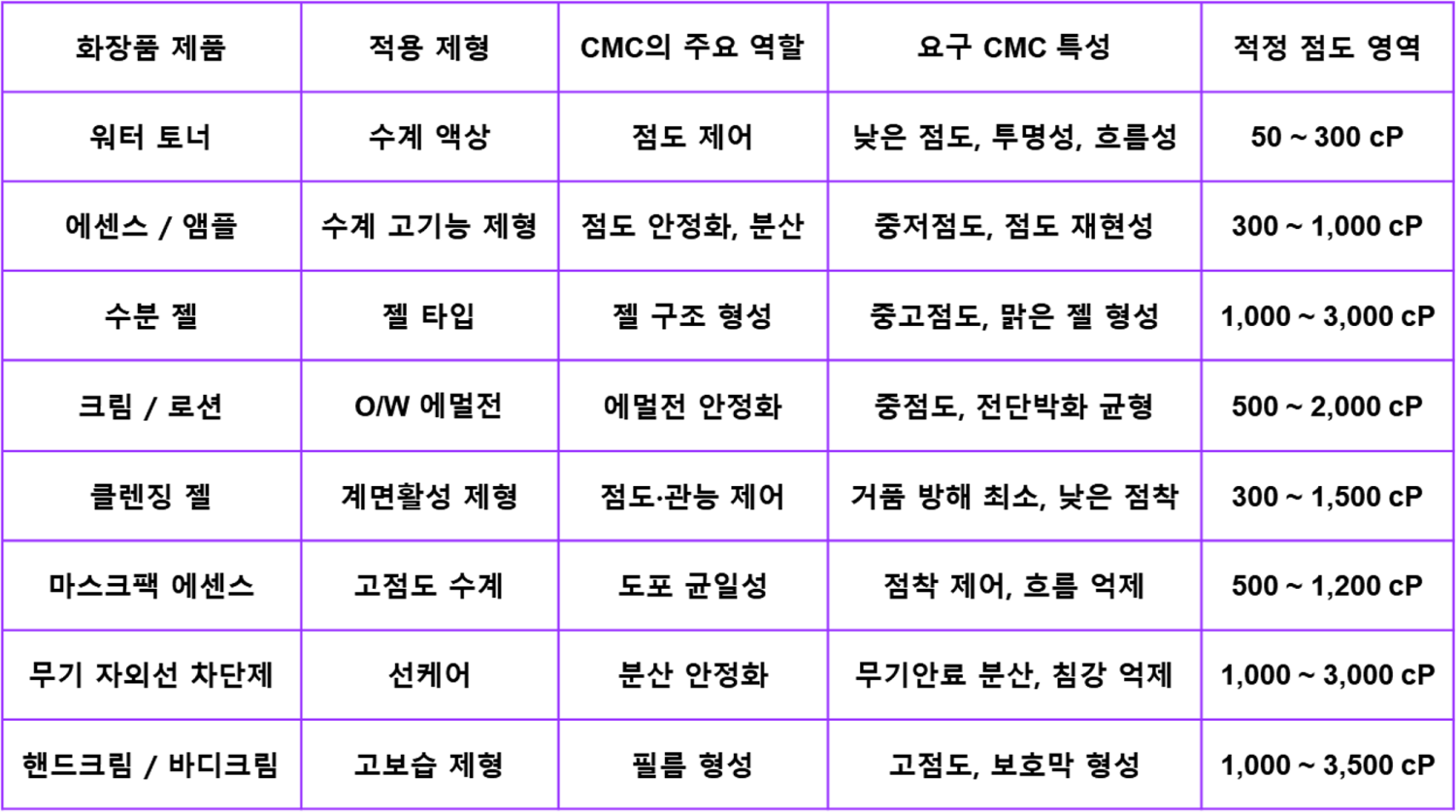 1. 화장품 제형 소재 측면에서 CMC 역할